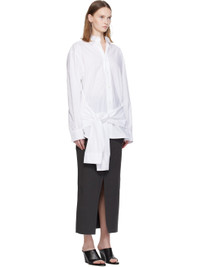 Oversized cotton poplin shirt. Integrated self-tie sleeve-style trim at back hem. · Spread collar · Button closure · Logo plaque at front · Shirttail hem · Dropped shoulders · Buttoned barrel cuffs · Locker loop at back collar Supplier color: White 100% cotton. Made in Morocco 252808F109005