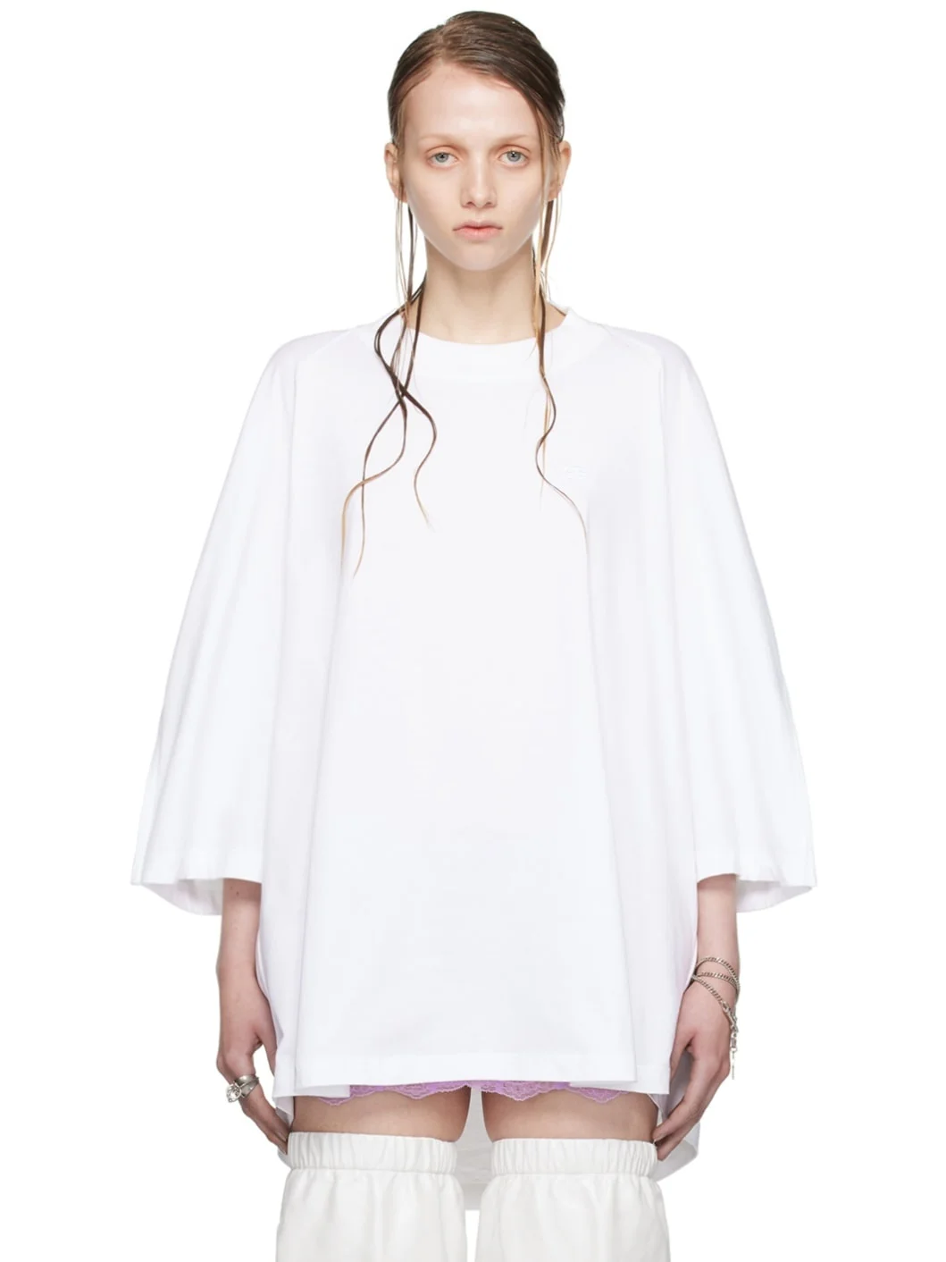 Cotton jersey T-shirt. · Rib knit crewneck · Logo embroidered at chest · Raglan sleeves · Pinched seam at sleeves and back · Logo and text embroidered at back yoke · Locker loop at back Part of the Jean Paul Gaultier x Shayne Oliver collaboration. Supplier color: White 100% cotton. Made in France 242808F110023