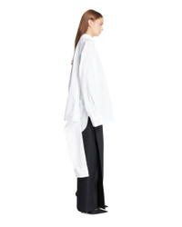 Jean Paul Gaultier White Cotton Hybrid Shirt. White cotton, hybrid four-sleeve construction with a panel at the back that can be worn as an integrated scarf. Front button closure, relaxed fit. Perla is 176 cm and she is wearing size S. DETAILS Model: UST033C07001 Composition: 100% Cotton Made in: MOROCCO Season: FW25-26