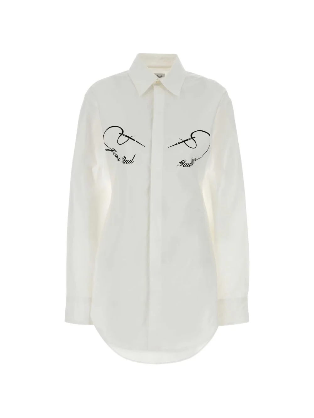 poplin shirt Highlights - White - Graphic print - Button fastening - Long sleeves - Buttoned cuffs - Curved hem Imported Composition Cotton 97%, Elastane 3% Washing instructions Read Manufacturer Guidelines