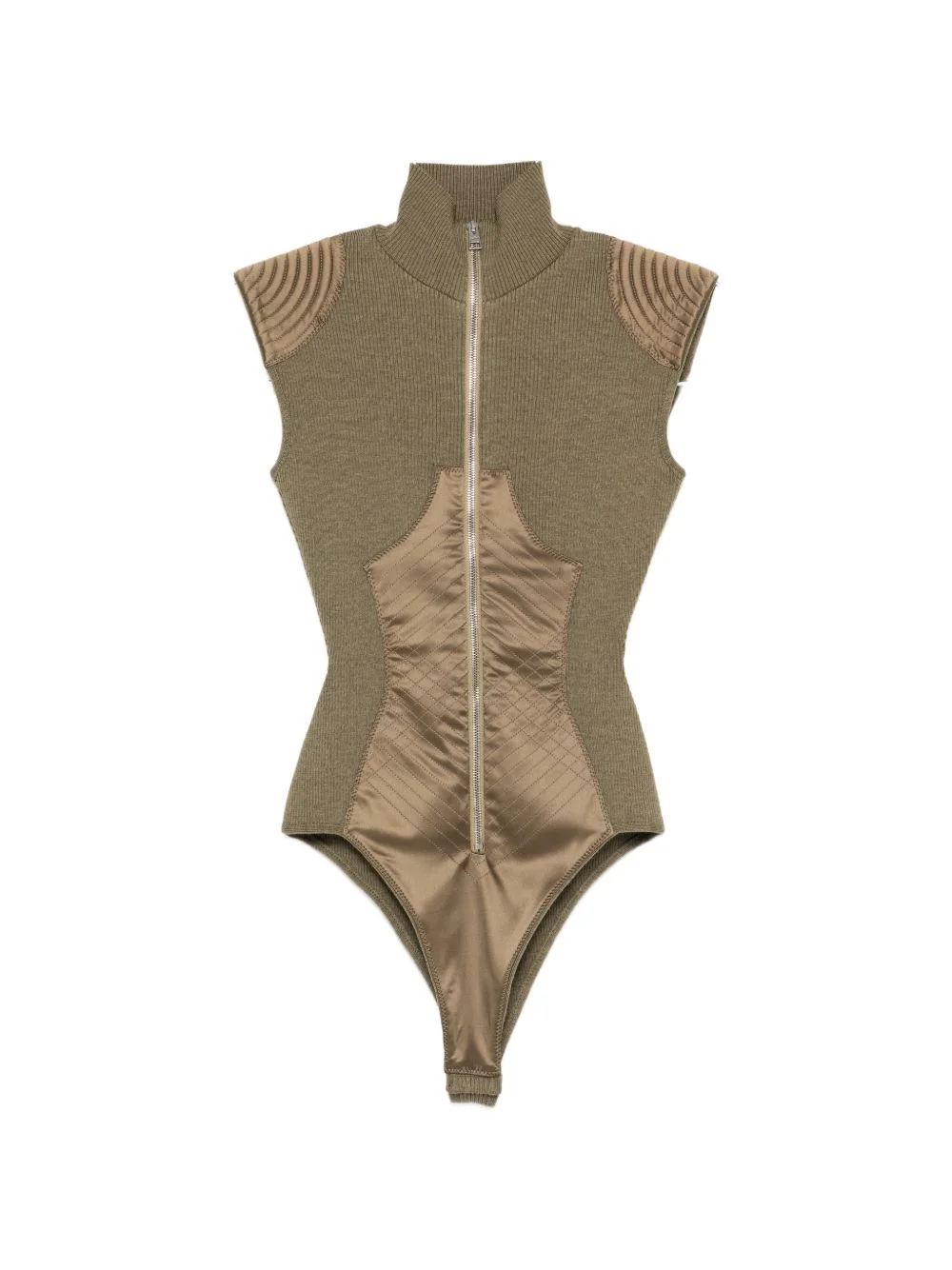 ribbed-knit body Highlights - Green - Ribbed knit - High neck - Zip fastening - Sleeveless - Just a reminder that this piece must be tried on over your own garments. Made in Italy Composition Virgin Wool 96%, Polyamide 3%, Elastane 1% Washing instructions Dry Clean Only