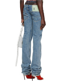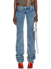 Skinny-fit non-stretch denim jeans. Fading throughout. · Low-rise · Belt loops · Five-pocket styling · Button-fly · Extended cuffs · Leather logo patch at back waistband · Locker loop at back · Logo-engraved silver-tone hardware · Contrast stitching in yellow Part of the Jean Paul Gaultier x Shayne Oliver collaboration. Supplier color: Light blue 100% cotton. Made in France 242808F069009