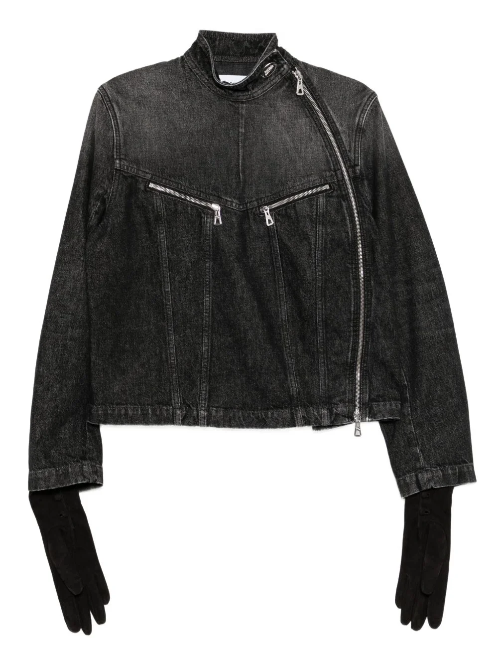 zipped denim jacket Highlights - Black - Side zip fastening - Two zip-fastening chest pockets - Long sleeves Made in Italy Composition Organic Cotton 100% SIZE & FIT Model measurements Height 5 ft 10 in(1.78 m) Bust/Chest 28.74 in(73 cm) Hips 31.49 in(80 cm) Waist 23.62 in(60 cm) FittingInformation Designed for a relaxed fit, this piece allows for comfort and movement when worn Made from a midweight non-stretch fabric, this piece offers minimal elasticity when worn Washing instructions Machine Wash