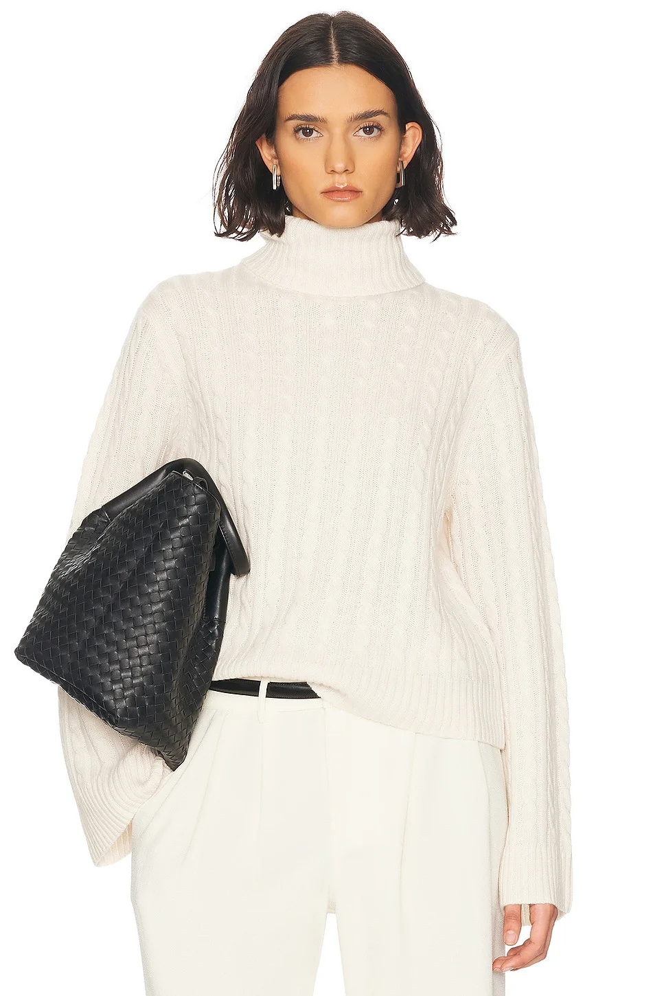 Details - 71% wool, 29% cashmere - Made in China - Dry clean only - Pull-on styling - Foldover turtleneck styling - Midweight cable-knit fabric - Our Style No. JKAY-WK45 - Manufacturer Style No. 48-7467-A25