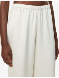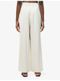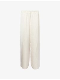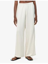 PRODUCT DETAILS - Jenni Kayne woven trousers - 58% rayon, 42% polyester - Relaxed fit, high-rise, wide leg, elasticated waistband, all-over satin texture - Dry clean - True to size - Size small: rise 13in / 34cm, inside leg 30in / 77cm, leg opening 24in / 61cm - Model is 5ft 10in/1.78m and wears a size small - Lightweight, stretchy Ref: R04529910