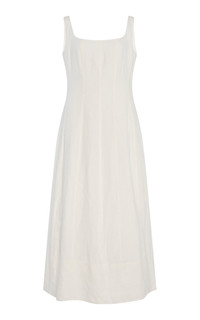 With focus on sumptuous textiles and neutral hues, Jenni Kayne excels in crafting covetable wardrobe staples to cherish season after season. Crafted from crisp, breathable linen, the 'Kinney' midi is an understated square neck, A-line design with timeless appeal. PRODUCT DETAILS - Pre-Fall '25 - Concealed zip fastening along back - Composition: 100% Linen - Dry clean or hand wash - Imported SIZE & FIT - Designed for a slim fit