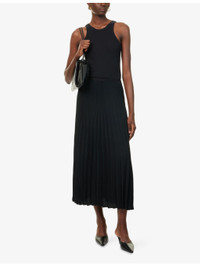 PRODUCT DETAILS - Jenni Kayne woven midi skirt - 100% polyester - Regular fit, high-waist, contrast elasticated waistband, all-over pleated, all-over crepe texture - Dry clean - True to size - Size small: length 33in / 84cm - Model is 5ft 10in/1.78m and wears a size small - Lightweight, stretchy Ref: R04529911