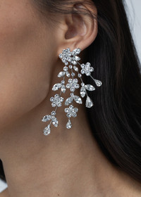 A finishing touch with exceptional presence, the Daphne Earrings are astutely shaped to frame the face with their curved façade. This stunning statement earring is bursting with romantic floral sprigs. Though substantial in size, these earrings are thoughtfully crafted by hand in New York to be lightweight and comfortable to wear. Material The Daphne Earrings are made by hand in New York from 18K gold or rhodium plated brass and crystals. They have a surgical-steel post, are nickel-free, and safe for sensitive skin. We recommend storing earrings in their dust bag while not in use, and avoiding contact with water, perfume, hairspray, and other chemicals.