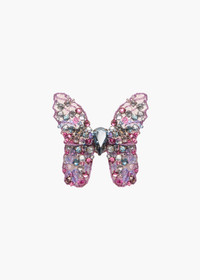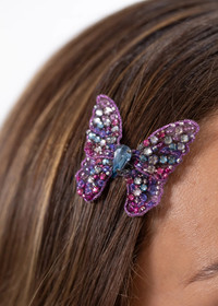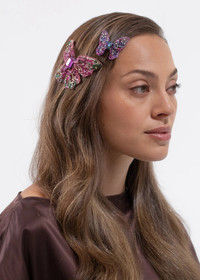 The Abbie Barrette is made by hand in New York, with hand-embroidered Austrian crystals scattered across silk chiffon, dip-dyed to create an ombre effect. The butterfly is wired by hand to create its nuanced, lifelike shape— butterflies are integral to the Jennifer Behr brand, representing spiritual rebirth and connection to the divine. Each one is finished with a French flip clip for secure placement anywhere in the hair— layer multiples at once for a dramatic finished look. Material The Abbie Barrette is made by hand in New York featuring a hand-embroidered Austrian crystal butterfly with French steel flip clip closure. We recommend treating this clip as you would a piece of jewelry, and storing in the dust bag when not in use. Avoid contact with water, perfume, and other chemicals, including hairspray, which should be used before placement in the hair.