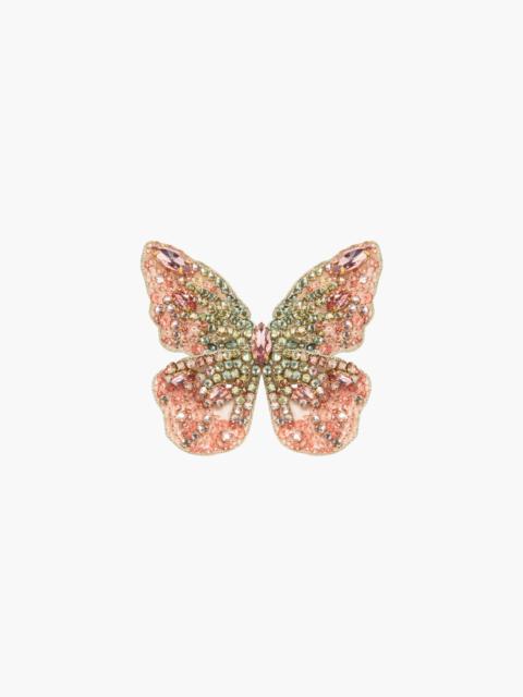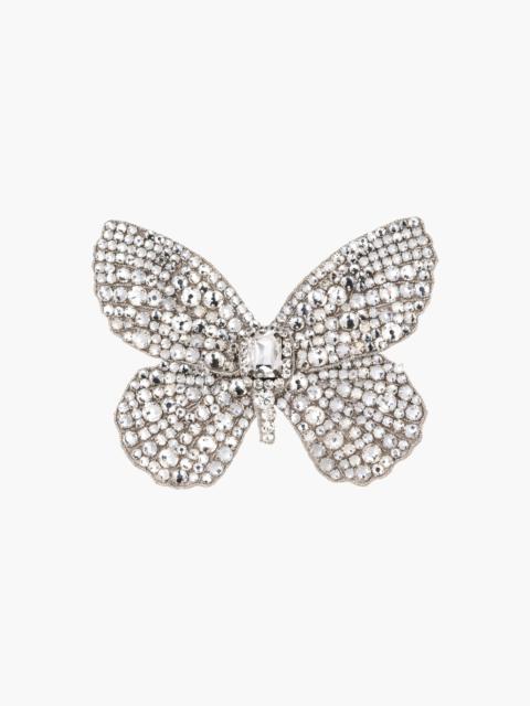 More akin to a piece of fine jewelry than a hair clip, the Absolem Barrette is made by hand in New York, with hand-embroidered Austrian crystals scattered across silk chiffon, dip-dyed to create a vivid ombre effect. Butterflies are iconic emblems of the Jennifer Behr brand, signaling spiritual rebirth and connection to the divine. The butterfly is wired by hand to create the nuanced, lifelike shape, and each one is finished with a French flip clip for secure placement anywhere in the hair— layer multiples at once for a dramatic finished look. Material The Absolem Barrette is made by hand in New York featuring a hand-embroidered Austrian crystal butterfly with French steel flip clip closure. We recommend treating this clip as you would a piece of jewelry, and storing in the dust bag when not in use. Avoid contact with water, perfume, and other chemicals, including hairspray, which should be used before placement in the hair.