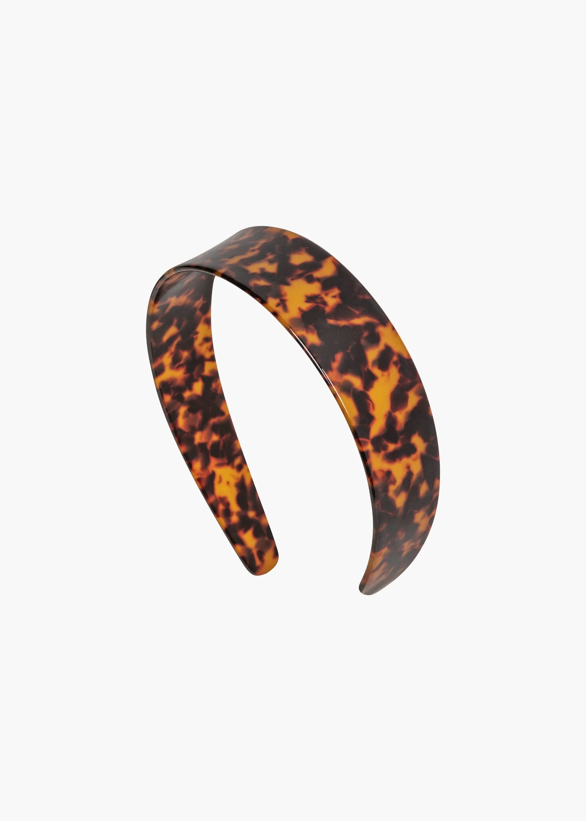 Inspired by the cult-classic looks seen on Carolyn Bessette-Kennedy in the 90s, the Acetate Lydia Headband is an essential piece in every headband collection. Its high-quality acetate is emblazoned with a tortoiseshell pattern. The fit is thoughtfully designed with comfort in mind, complete with a golden logo that is inset to ensure the headband lays flush against the head. Material The Lydia Headband in acetate is made from a flexible and light cellulose acetate, designed to stay firmly in place in the hair. We recommend treating this headband as you would a piece of jewelry, and storing in the dust bag when not in use. Avoid contact with water, perfume, and other chemicals, including hairspray, which should be used before placement in the hair.