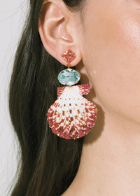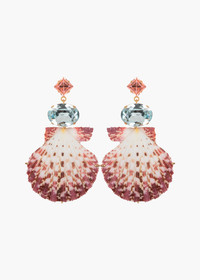 The Aegean Earrings harness the beauty of natural seashells, using genuine Royal Cloak scallop shells. These organic elements are paired with sparkling crystals, forming a palette inspired by the shimmering Aegean Sea. Made by hand in New York, these earrings feature a hand-formed custom setting crafted with time-intensive fine jewelry techniques. Dimensions: 2 7/8 inch length Material The Aegean Earrings are made by hand in New York from Czech crystals and natural seashells. All shells have natural variances in color and markings that make each one unique. They have a surgical-steel post, are nickel-free and safe for sensitive skin. We recommend storing earrings in their dust bag while not in use, and avoiding contact with water, perfume, hairspray, and other chemicals.