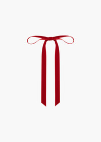 The Aida Velvet Bow Barrette exudes the effortless, whimsical look of a ribbon tied in the hair. Crafted with a fine velvet ribbon, this bow is inspired by timeless childhood heroines like Alice in Wonderland, but with a firmly sophisticated flair. Made by hand in our New York studio, this bow features an automatic French barrette closure, making it easy to wear in an endless number of hairstyles, in any type of hair. Dimensions:6 inch width, 11 inch length Material The Aida Bow Barrette is made by hand in New York of velvet ribbon with a steel French barrette closure. We recommend treating this bow as you would a piece of jewelry, and storing in the dust bag when not in use. Avoid contact with water, perfume, and other chemicals, including hairspray, which should be used before placement in the hair.