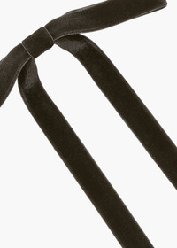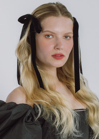 The Aida Velvet Bow Barrette exudes the effortless, whimsical look of a ribbon tied in the hair. Crafted with a fine velvet ribbon, this bow is inspired by timeless childhood heroines like Alice in Wonderland, but with a firmly sophisticated flair. Made by hand in our New York studio, this bow features an automatic French barrette closure, making it easy to wear in an endless number of hairstyles, in any type of hair. Material The Aida Bow Barrette is made by hand in New York of velvet ribbon with a steel French barrette closure. We recommend treating this bow as you would a piece of jewelry, and storing in the dust bag when not in use. Avoid contact with water, perfume, and other chemicals, including hairspray, which should be used before placement in the hair.