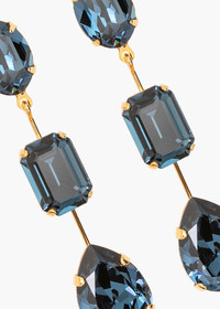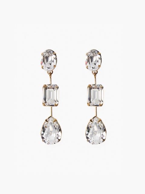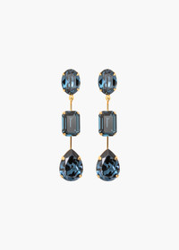 Inspired by Renaissance gems, the Allanah Earring features noteworthy, oversized stones. The three glass crystals of varying shapes catch the light and create magnificent sparkle. These earrings are very lightweight, as they're made by hand for comfort and mobility. Material The Allanah Earring is a post earring with a surgical-steel post. Our earrings are nickel-free and safe for sensitive skin. These earrings are crafted by hand in New York from crystals and plated brass. We recommend storing earrings in their dust bag while not in use, and avoiding contact with water, perfume, hairspray, and other chemicals.