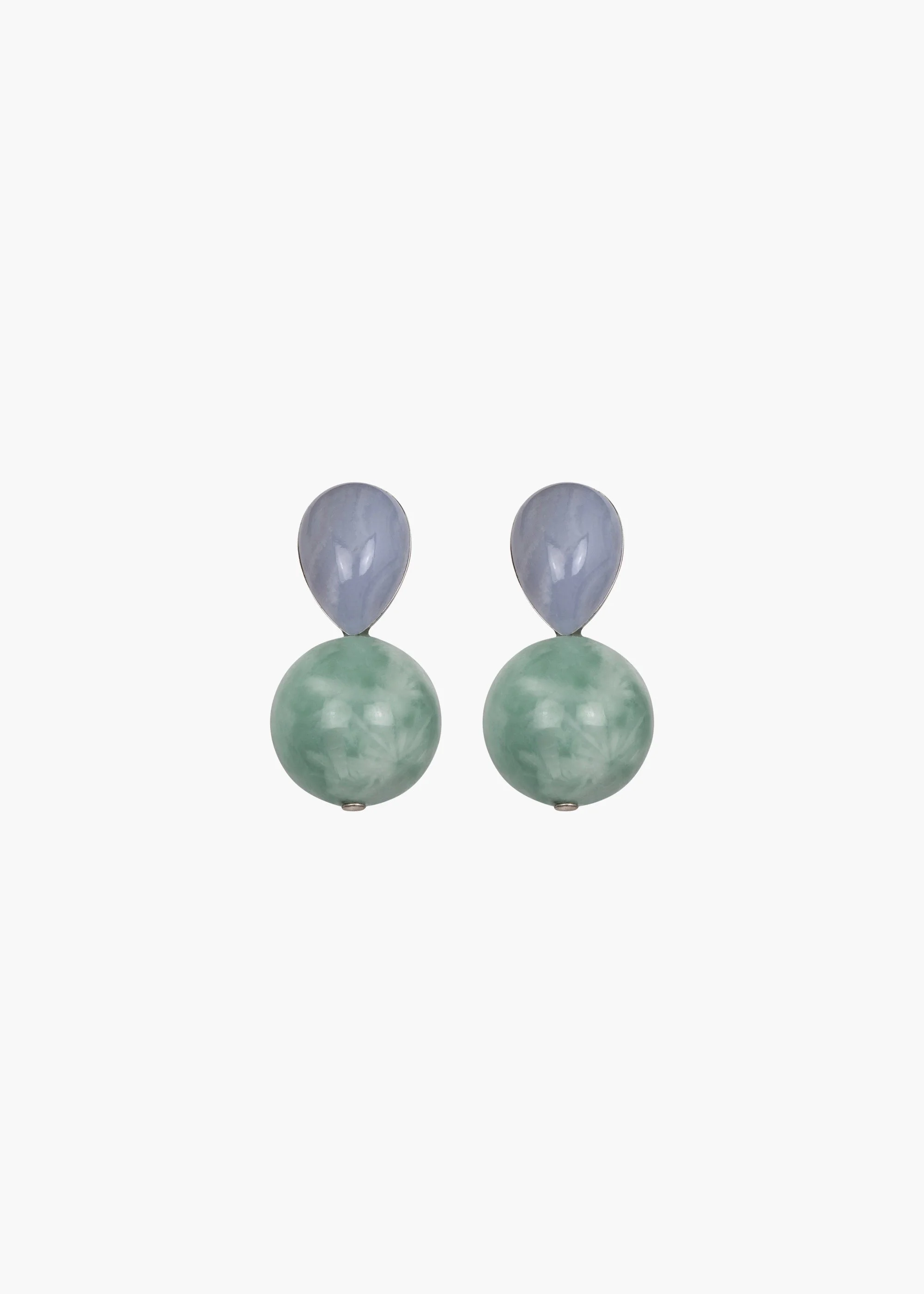 With semi-precious gemstones taking the shape of eye-catching gumballs, the Allison Earrings have an undeniably playful nature. The jadite (the rarer of the two type of jade) and blue agate stones were specifically selected to create a palette that pairs well with anything in your wardrobe, complimenting similarly muted pastels, and livening up more serious tones. Made by hand in New York with an 18-karat gold-plated setting, we love these earrings layered with our semi-precious jewelry, like the Louisa Necklace and the Salome Necklace. Material The Samantha Earrings are made by hand in New York from 18K gold or rhodium plated brass and natural semi-precious stones. All stones have natural variances in color and markings that make each one unique. They have a surgical-steel post, are nickel-free, and safe for sensitive skin. We recommend storing earrings in their dust bag while not in use, and avoiding contact with water, perfume, hairspray, and other chemicals.