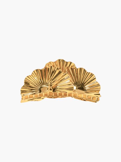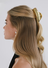 The Amira Jaw Clip turns heads with its sculptural design. Its luxurious 18-karat gold-plated finish sends boosts of shine across the surface for an eye-catching effect. The classic jaw clip clasp offers versatility to style it a number of ways. Material The Amira Jaw Clip is an 18K gold tone plated zinc jaw clip with a silicone spring cover. We recommend treating this clip as you would a piece of jewelry, and storing in the dust bag when not in use. Avoid contact with water, perfume, and other chemicals, including hairspray, which should be used before placement in the hair. Imported.