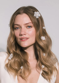 With their unique magnet closure, the Anemone Hair Magnets make it possible to achieve the look of flowers floating in the hair, even scattered up and down loose locks in a seemingly impossible arrangement. This set of 8 is made by hand in New York, with silk satin-faced organza flowers set in the center with Austrian crystals, or crystal pearls. We love these flowers layered with the Kira Hair Magnet Set or the Paige Hair Magnet Set. Dimensions: Small Flower - 5/8in Medium Flower - 1in Large Flower - 1 1/2in Material The Anemone Hair Magnet Set are a set of 8 hair magnets with 3 different sizes, handmade in New York of silk satin faced organza flowers and Austrian crystals or crystal pearls on durable silver toned magnetic hair clips They are designed to stay firmly in place, once other pins have the hairstyle securely fastened. We recommend treating each magnet as you would a piece of jewelry, and storing in the dust bag when not in use. Ensure to keep each magnet jewel set separate to avoid all magnets sticking together. Avoid contact with water, perfume, and other chemicals, including hairspray, which should be used before placement in the hair.