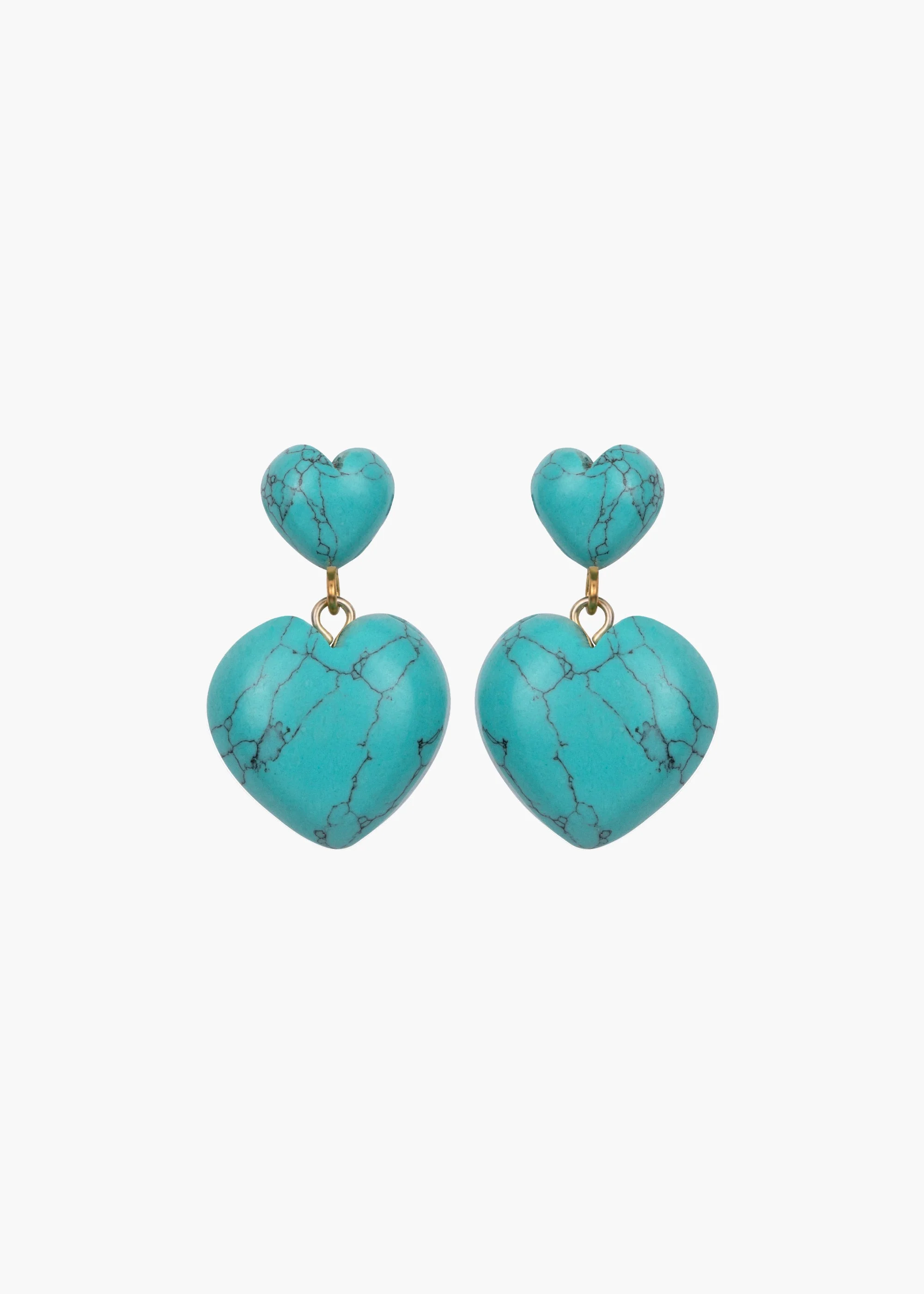 The Arely Earrings feature turquoise carved into dainty hearts for a fresh look. The smooth curves highlight the natural variations found in turquoise that make each piece unique. The hinged drop sways as you move, drawing the eye in. Dimensions: 1.125" length. Material The Arely Earrings are made by hand in New York from semi-precious stone elements. They have a surgical-steel post, are nickel-free, and safe for sensitive skin. We recommend storing earrings in their dust bag while not in use, and avoiding contact with water, perfume, hairspray, and other chemicals.