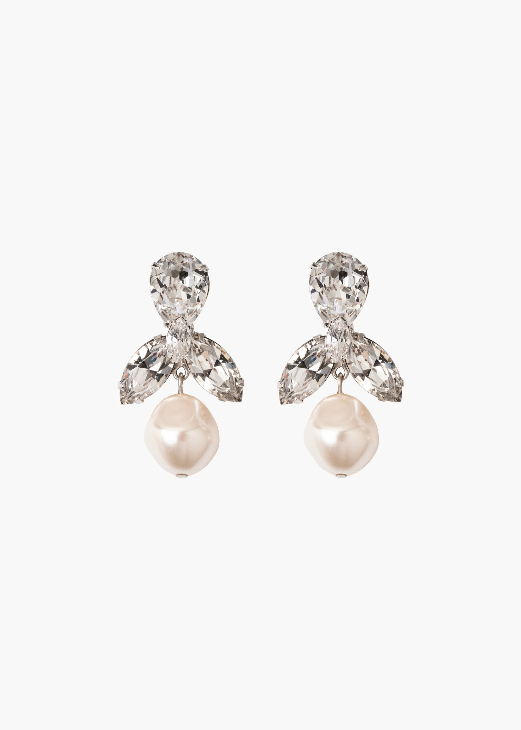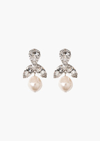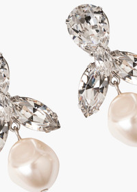 The Aren Earrings are elegance personified. The oversized crystals draw the eye in, while the pearl drop adds movement. These classic drop earrings are a timeless addition to any jewelry collection. Dimensions: 1.5" length. Material The Aren Earrings are made by hand in New York, from rhodium plated brass, crystals, and poly baroque pearls. They have a surgical-steel post, are nickel-free, and safe for sensitive skin. We recommend storing earrings in their dust bag while not in use, and avoiding contact with water, perfume, hairspray, and other chemicals.