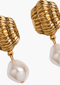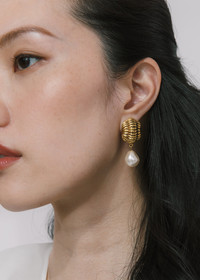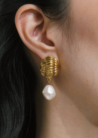 Combining classic details and abstract forms, the Asha Earrings can be worn with anything from romantic florals to tailored outfits. Cast from a 1960s earring, they deliver a timeless vintage look with endless versatility. They are complete with a crystal pearl drop for added movement. Material The Asha Earrings are made by hand in New York from 18K gold plated brass with drop pearls. They have a surgical-steel post, are nickel-free, and safe for sensitive skin. We recommend storing earrings in their dust bag while not in use, and avoiding contact with water, perfume, hairspray, and other chemicals.