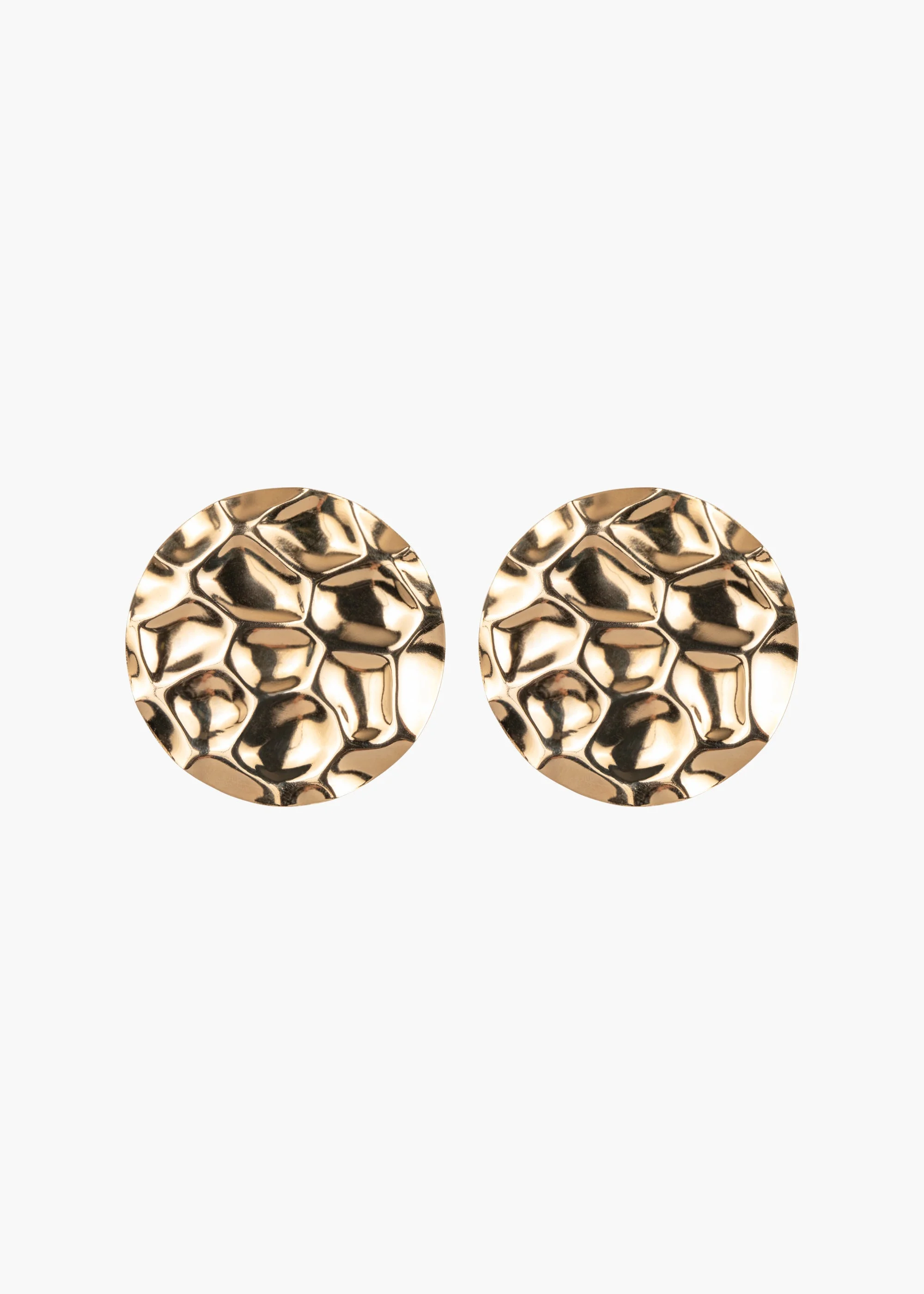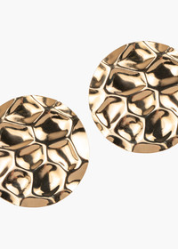 A singular conversation piece, the Azra Earrings are a dramatic disc earring. These sculptural earrings feature a hammered surface, sending boosts of shine in every direction. They are uniquely crafted by hand of a single flat sheet of brass, making them remarkably lightweight for their size. Material The Azra Earrings are made by hand in New York from 18K gold or rhodium plated brass. They have a surgical-steel post, are nickel-free, and safe for sensitive skin. We recommend storing earrings in their dust bag while not in use, and avoiding contact with water, perfume, hairspray, and other chemicals.