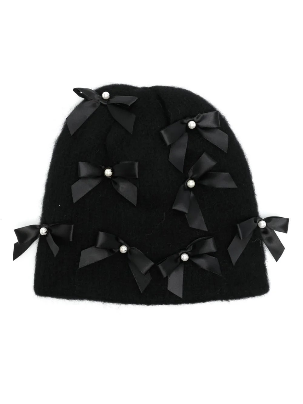 bow beanie Highlights - Black - Knitted construction - Bow detailing - Faux-pearl detailing - Pull-on style - This piece comes complete with a protective dust bag. Made in United States Composition Body: Alpaca 40%, Wool 40%, Plastic 10%, Other Fabrics 10% SIZE & FIT Measurement CIRCUMFERENCE 22.04 in(56 cm)
