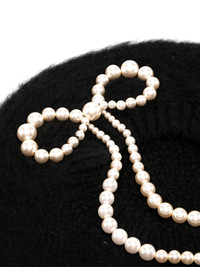bow beret Highlights - Black - Knitted construction - Bow detailing - Faux-pearl detailing - Pull-on style - This piece comes complete with a protective dust bag. Made in United States Composition Body: Alpaca 40%, Wool 40%, glass 20%