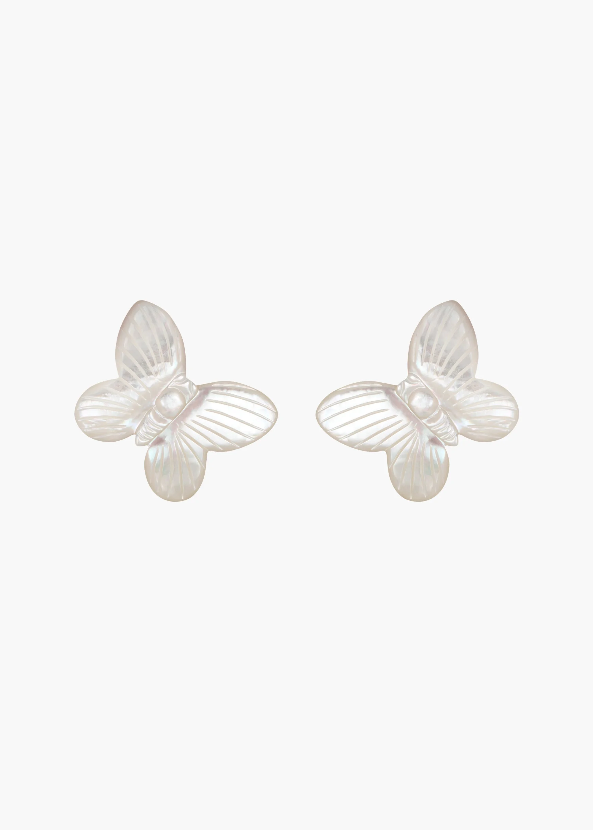 The Bree Earrings are a celebration of the butterfly: our adored emblem, an otherworldly harbinger of good fortune and rebirth. Stunning in their simplicity, these earrings allow the mother of pearl's beauty to sing. They are artfully angled to appear mid-flight, and etched with true-to-life details. Material The Bree Earrings are made by hand in New York from 18K gold plated brass and mother of pearl butterflies. They have a surgical-steel post, are nickel-free, and safe for sensitive skin. We recommend storing earrings in their dust bag while not in use, and avoiding contact with water, perfume, hairspray, and other chemicals.