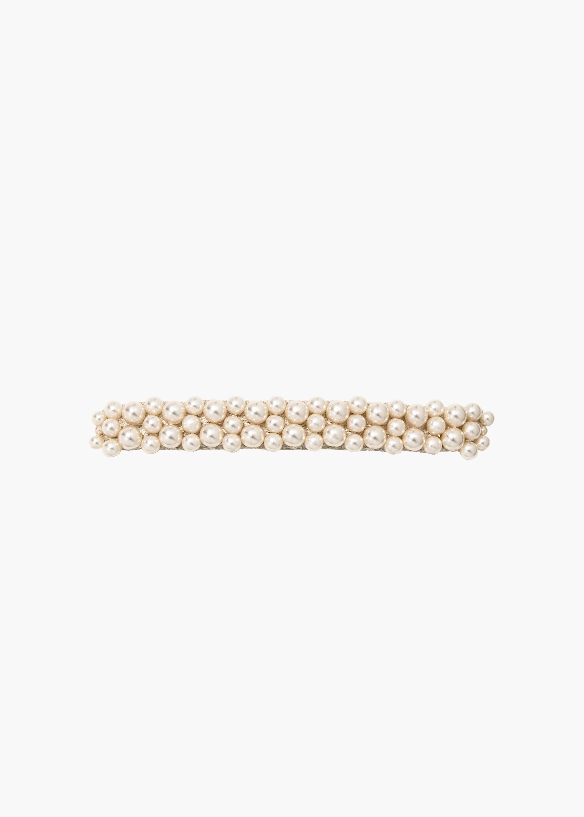 The Bria Barrette feels timeless and playful at once. Not all barrettes are created equally: each of these Czech crystal pearls are individually set by hand in our Brooklyn studio. We love layering barrettes in the hair, the same way you might layer necklaces. Dimensions: 2.75" Length Material The Bria Barrette is made by hand of Czech crystal pearls with a 18K gold plated French steel barrette closure. We recommend treating this barrette as you would a piece of jewelry, and storing in the dust bag when not in use. Avoid contact with water, perfume, and other chemicals, including hairspray, which should be used before placement in the hair. Imported.