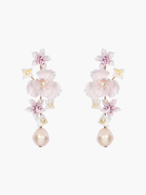 Straightforward yet breathtaking, the Briar Earrings are the dreamiest finishing touch. In a process that has been years in the making, polymer clay is hand-pressed to create each layered petal, for an incredibly realistic bloom. Finished with pearl details, these earrings pair perfectly with other pearl hair accessories and jewelry. Dimensions: 1 5/8 in x 1 in Material The Briar Earrings are made by hand in New York from Ukranian hand pressed polymer flowers with Czech crystal pearl centers. They have a surgical-steel post, are nickel-free, and safe for sensitive skin. We recommend storing earrings in their dust bag while not in use, and avoiding contact with water, perfume, hairspray, and other chemicals.