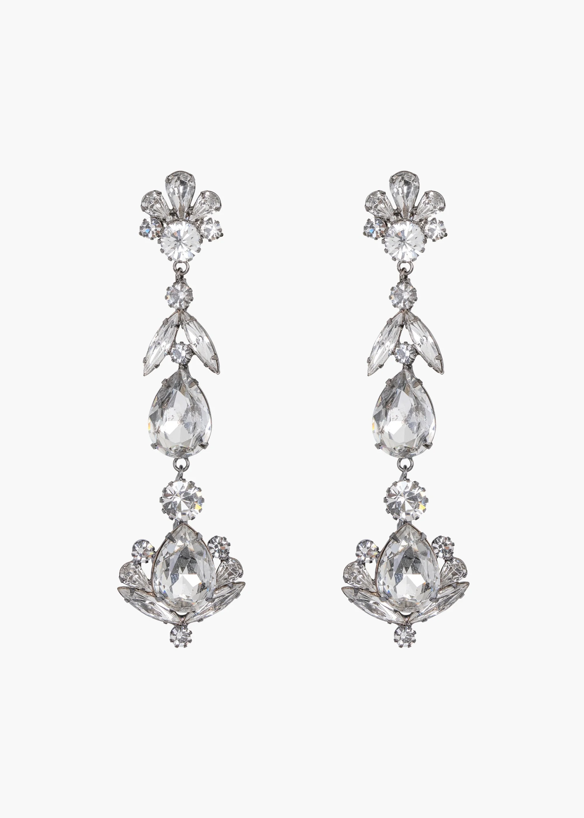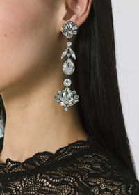 Inspired by antique jewels, the Bronwyn Earrings are an undeniably sophisticated statement. Fine crystals in a variety of cuts and sizes are artfully pieced together to form an exquisite pendant. Their enviable length has a flattering effect. Dimensions: 4 inch length Material The Bronwyn Earrings are made by hand in New York from gunmetal plated brass and crystal. They have a surgical-steel post, are nickel-free, and safe for sensitive skin. We recommend storing earrings in their dust bag while not in use, and avoiding contact with water, perfume, hairspray, and other chemicals.