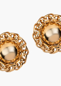 The Brooke Earrings draw inspiration from vintage button earrings of the 1980s, channeling that same effortless glamour. Made by hand in New York, each chain is wrapped by hand around a gleaming brass dome, a process that allows for considerably more rich detail than casting. The bigger sister to our Caryann Earrings, these make a chic impact. Material The Brooke Studs are made by hand in New York from 18k gold plated chain dome stud on a surgical steel post. They are nickel-free and safe for sensitive skin. We recommend storing earrings in their dust bag while not in use, and avoiding contact with water, perfume, hairspray, and other chemicals.