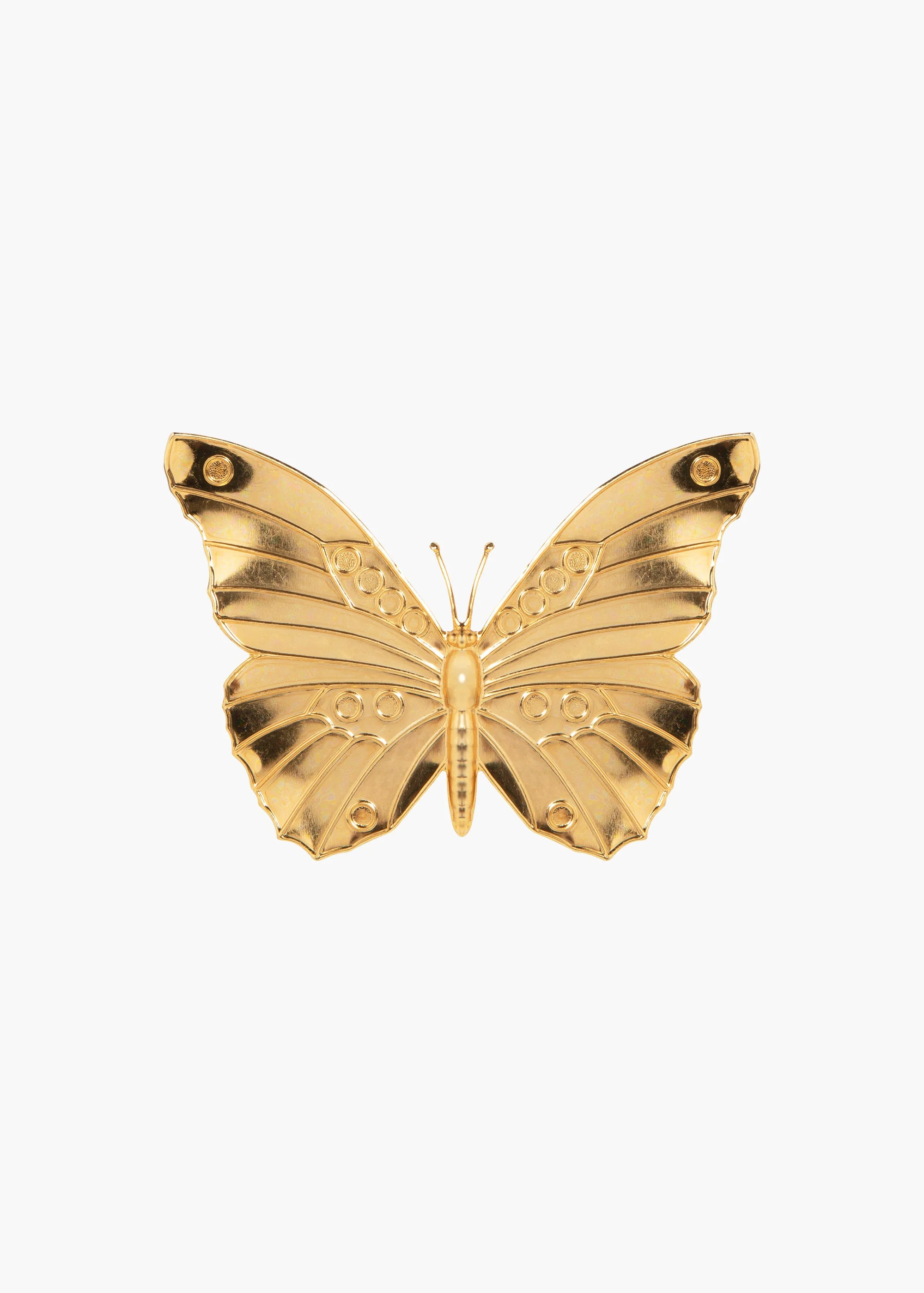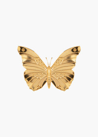 The Caria Barrette is our latest interpretation of the butterfly emblem that is so iconic to the Jennifer Behr brand, a favorite of ours for its association with renewal and hope. Crafted by hand of 18-karat gold-plated fine brass, the geometric embossing brings the butterfly to life. It sits on a French barrette clasp, making it easy to layer multiples at once for a more dramatic look. Dimensions: 2.5" height , 0.75" width, 2" length. Material The Caria Barrette is made by hand in New York of 18k gold plated brass with a steel French barrette closure. We recommend treating this clip as you would a piece of jewelry, and storing in the dust bag when not in use. Avoid contact with water, perfume, and other chemicals, including hairspray, which should be used before placement in the hair.