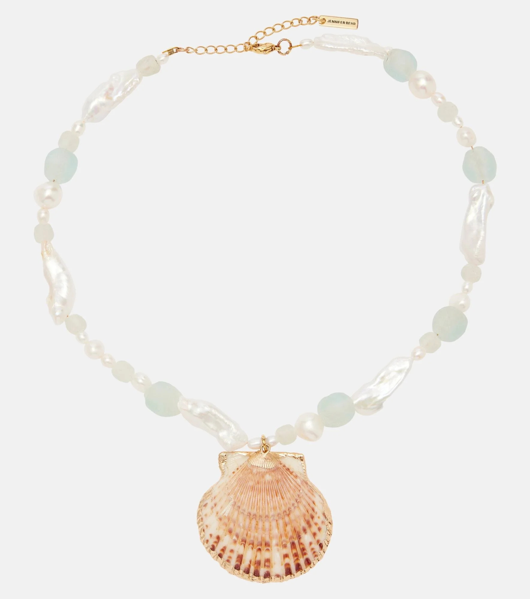 Product Details - Material: 18kt gold-plated brass, glass - Made in the USA - Item color: white, gold - Item number: P01043945 Size & Fit - Adjustable length - Width 1cm-0.5" - Pendant length 5cm-2" - Pendant width 4,5cm-2" - Min. length 43cm-17" - Max. length 49cm-19.5"