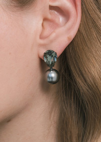 Stunning in their simplicity, the Cimone Earrings are a fresh take on a classic drop earring, fit for any occasion. Made by hand in New York, they feature a pear-cut Austrian crystals, with crystal pearl drops. Their petite size and layered materials allow these earrings to pair perfectly with a wide array of jewelry and hair accessories from our collection. Dimensions: 1 1/4in x 7/8in Material The Cimone Earrings are made by hand in New York from Gunmetal or 18K gold plated brass and Austrian crystal pearls. They have a surgical-steel post, are nickel-free, and safe for sensitive skin. We recommend storing earrings in their dust bag while not in use, and avoiding contact with water, perfume, hairspray, and other chemicals.