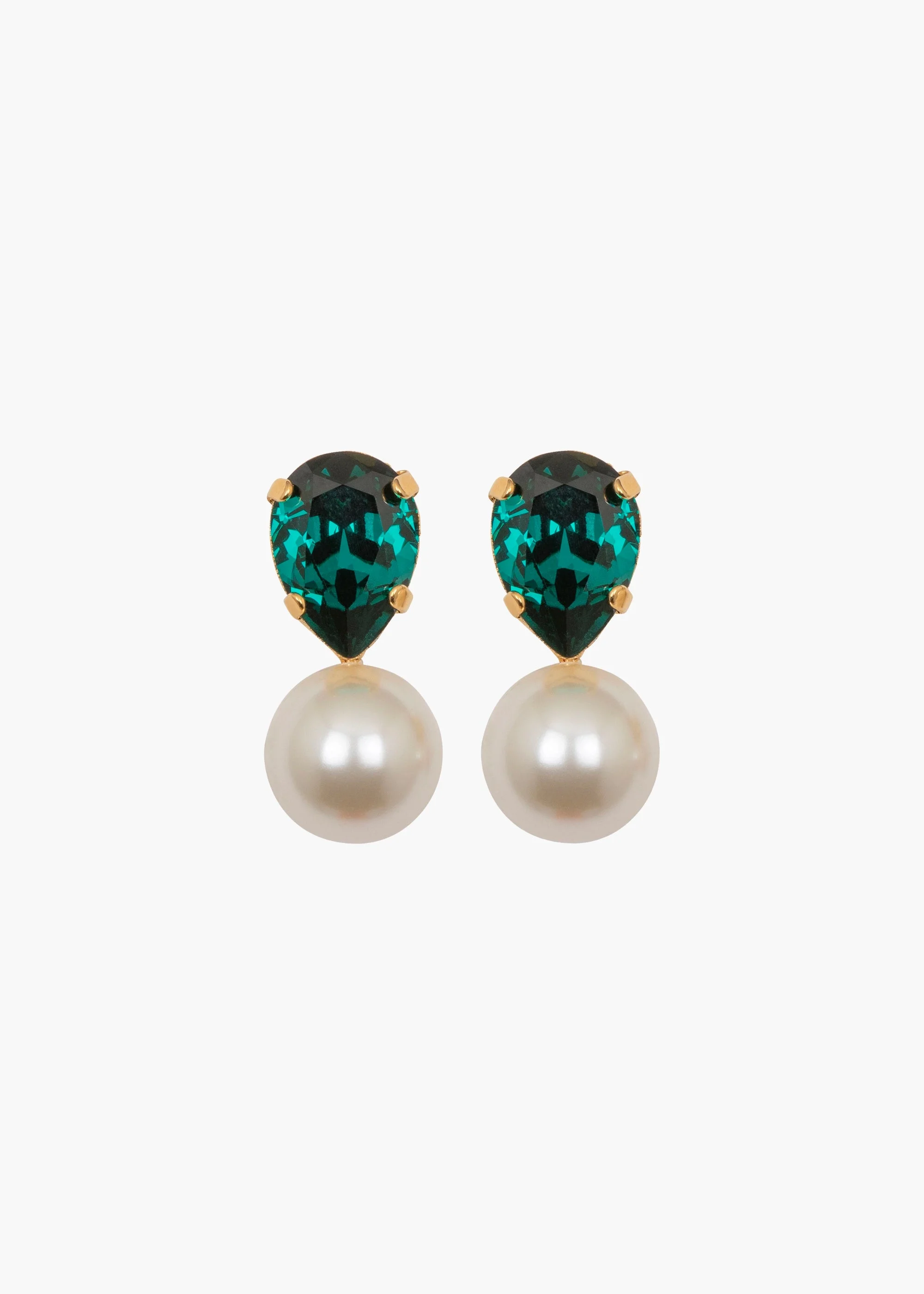 Stunning in their simplicity, the Cimone Earrings are a fresh take on a classic drop earring, fit for any occasion. Made by hand in New York, they feature a pear-cut Austrian crystals, with crystal pearl drops. Their petite size and layered materials allow these earrings to pair perfectly with a wide array of jewelry and hair accessories from our collection. Dimensions: 1 1/4in x 7/8in Material The Cimone Earrings are made by hand in New York from Gunmetal or 18K gold plated brass and Austrian crystal pearls. They have a surgical-steel post, are nickel-free, and safe for sensitive skin. We recommend storing earrings in their dust bag while not in use, and avoiding contact with water, perfume, hairspray, and other chemicals.
