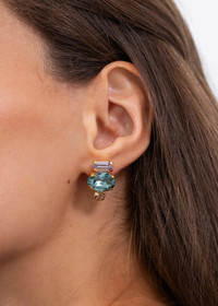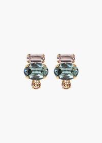 Referencing iconic Art Deco interiors, the Cleo Earrings layer Austrian crystals in a mix of cuts for a punchy, geometric look. Made by hand in New York, the fine Austrian crystals are situated in an 18-karat gold-plated setting. This earring is endlessly versatile— we love matching it to an ensemble's palette, or using it to contrast the tones of a look for emphasis. Dimensions: 0.75" Material The Cleo Earrings are made by hand in New York from Austrian crystals and 18k gold plated brass. They have a surgical-steel post, are nickel-free and safe for sensitive skin. We recommend storing earrings in their dust bag while not in use, and avoiding contact with water, perfume, hairspray, and other chemicals.