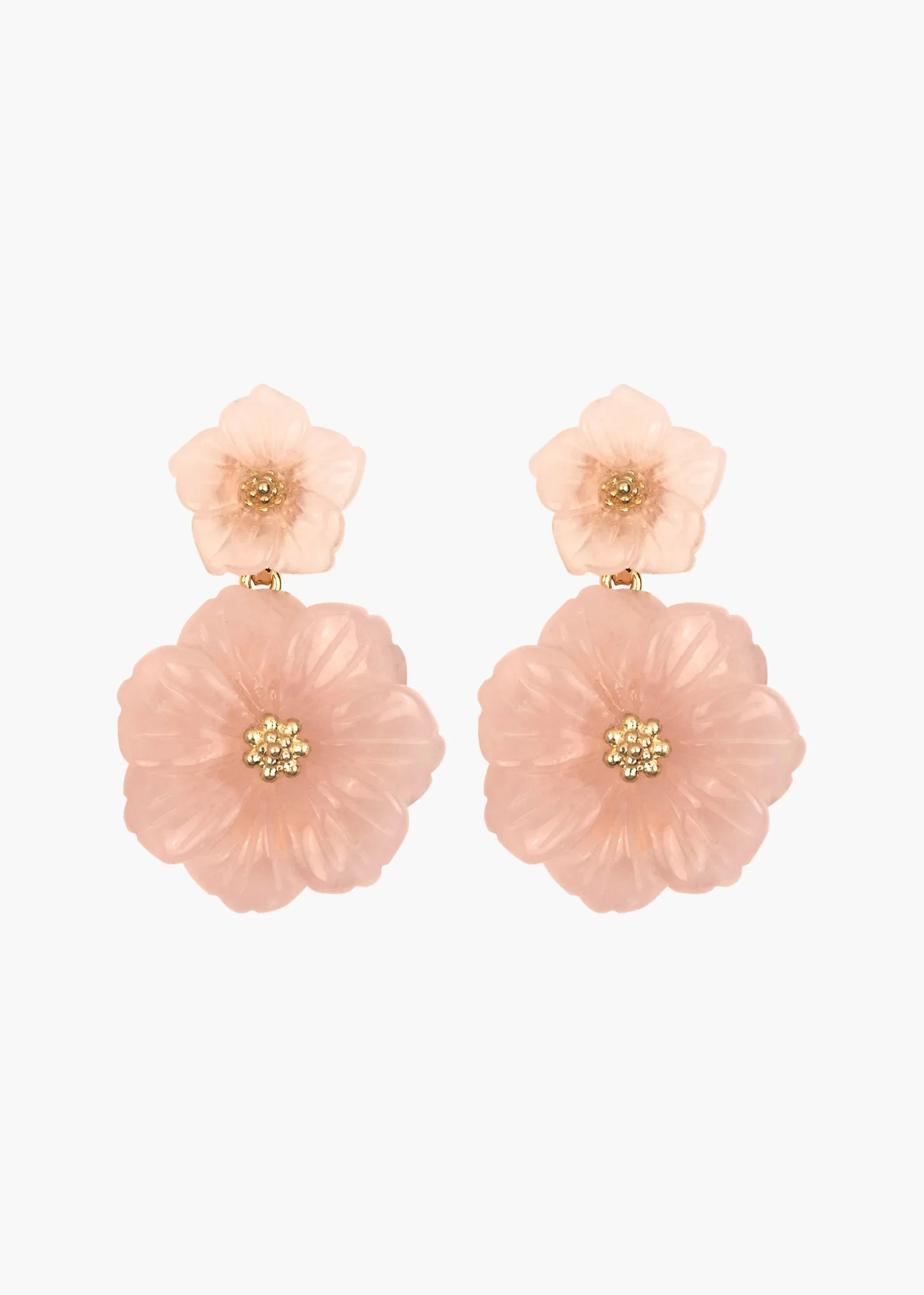 Inspired by our best-selling Zia Earrings, the Corinne Earrings are rendered in awe-inspiring hues of semi-precious stones. Each flower is carved by hand, and thoughtfully finished with an 18-karat gold-plated stamen detail. These earrings are designed to pair effortlessly with other pieces in our Semi-Precious Collection. Material The Corinne Earrings are made by hand in New York from semi-precious stone elements. They have a surgical-steel post, are nickel-free, and safe for sensitive skin. We recommend storing earrings in their dust bag while not in use, and avoiding contact with water, perfume, hairspray, and other chemicals.