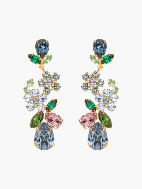 The Cosetta Earrings are a wearable work of art made by hand in New York, referencing the work of innovative floral artists. Pieced together with fine Austrian crystals in an 18-karat gold-plated setting, the stark difference in the flowers' scale creates a sense of depth, cleverly creating the illusion of a three-dimensional bouquet of flowers. Intentionally designed to frame the face, the subtle positioning of each individual element is carefully considered during the design process. Dimensions: 2 3/4in x 1in Material The Cosetta Earrings are made by hand in New York from 18K gold plated brass and Austrian crystals. They have a surgical-steel post, are nickel-free, and safe for sensitive skin. We recommend storing earrings in their dust bag while not in use, and avoiding contact with water, perfume, hairspray, and other chemicals.