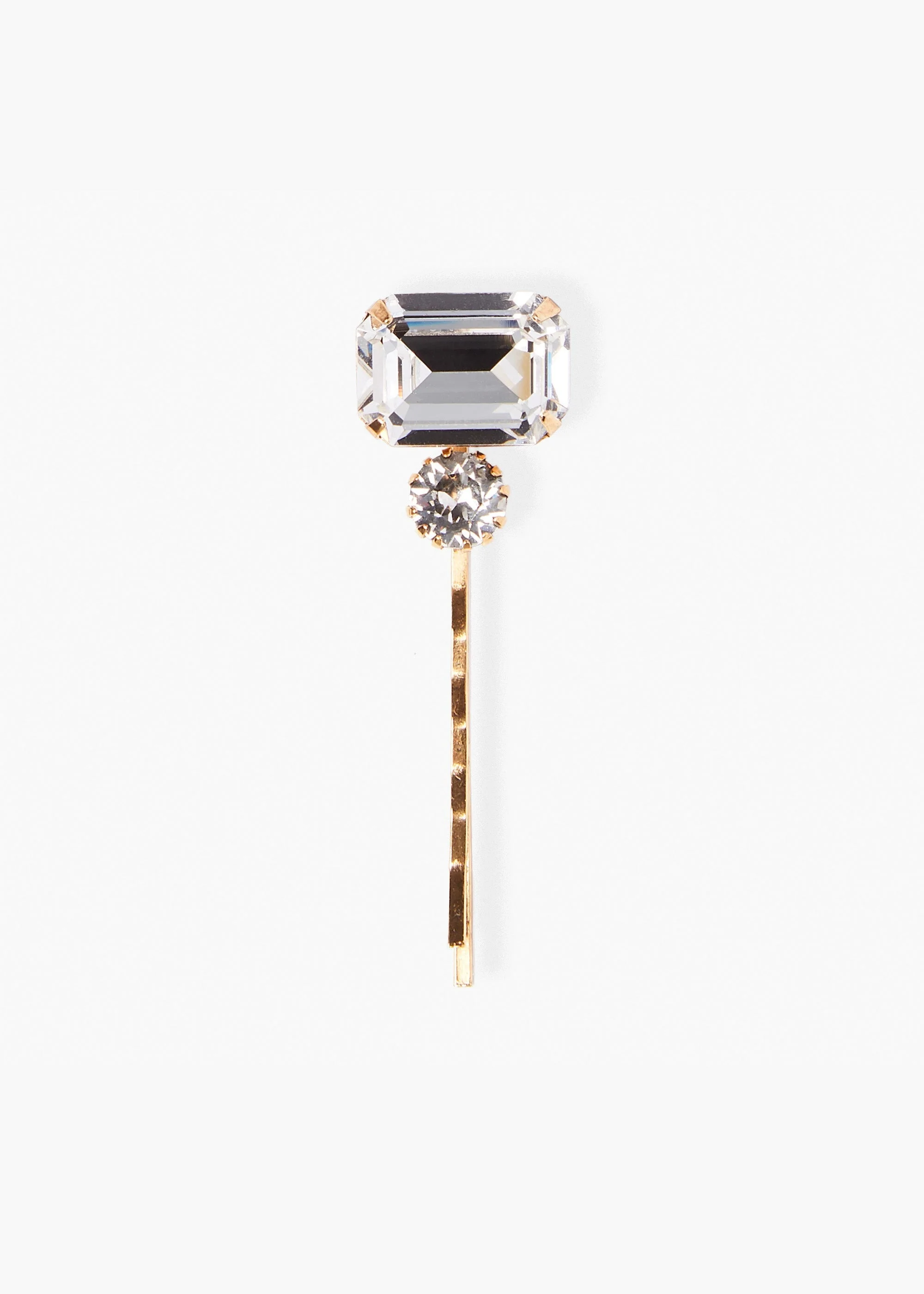 The Gemma Bobby Pin is inspired by the rich opulence of Renaissance art, unabashedly embracing jewel tones. Made of varying combinations of colorful Swarovski crystals and smaller complimentary stones, these gems are pure candy-colored fun. The Gemma Bobby Pin can be worn solo for a more subdued look, but we love creating drama with multiple colors stacked on, and mixing with the Perla Bobby Pins for a look fit for royalty. Dimensions: 2.25 x 0.75 x 0.5 inches Weight: 6g Material The Gemma Bobby Pin is made in New York of Swarovski crystal on a durable steel bobby pin, designed to stay firmly in place, once other pins have the hairstyle securely fastened. We recommend treating each pin as you would a piece of jewelry, and storing in the dust bag when not in use. Avoid contact with water, perfume, and other chemicals, including hairspray, which should be used before placement in the hair.
