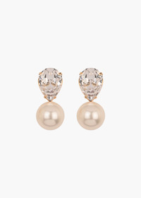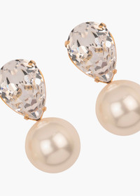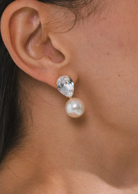 Stunning in their simplicity, the Cimone Earrings are a fresh take on a classic drop earring, fit for any occasion. Made by hand in New York, they feature a pear-cut Austrian crystal, with a crystal pearl drop. Their petite size and layered materials allow these earrings to pair perfectly with a wide array of jewelry and hair accessories from our collection. Dimensions: 1 1/4in x 7/8in Material The Cimone Earrings are made by hand in New York from Gunmetal or 18K gold plated brass and Austrian crystal pearls. They have a surgical-steel post, are nickel-free, and safe for sensitive skin. We recommend storing earrings in their dust bag while not in use, and avoiding contact with water, perfume, hairspray, and other chemicals.