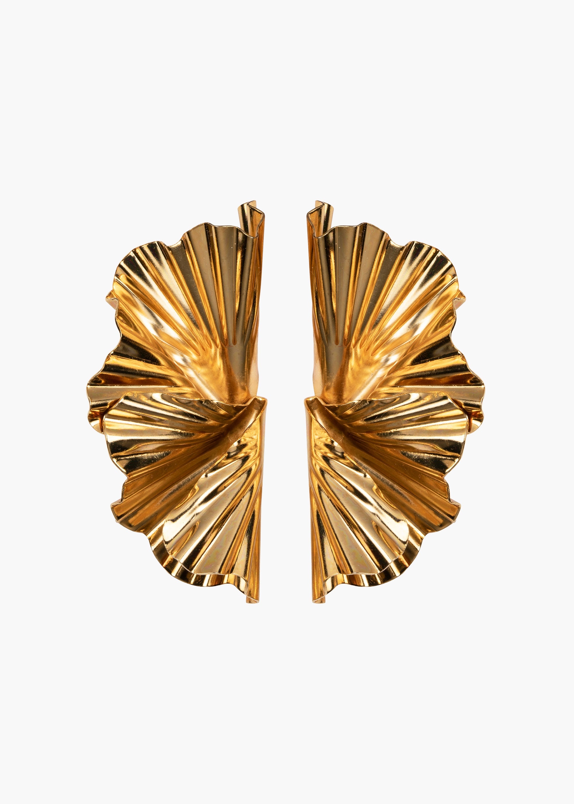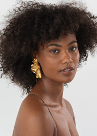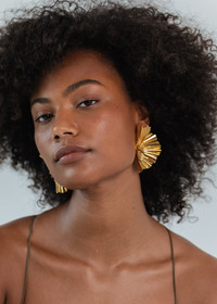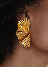 The Darya Earrings cleverly draw upon the natural ripples of the ocean in a face-framing accoutrement. The earring's sculptural ridges are imbued with kinetic energy, mimicking the motion of the sea. The organic shape combined with the high-shine golden finish creates awe-inspiring boosts of light gleaming from their surface. Dimensions: 3 inch length Material The Darya Earrings are made by hand in New York from 18K gold plated brass. They have a surgical-steel post, are nickel-free, and safe for sensitive skin. We recommend storing earrings in their dust bag while not in use, and avoiding contact with water, perfume, hairspray, and other chemicals.