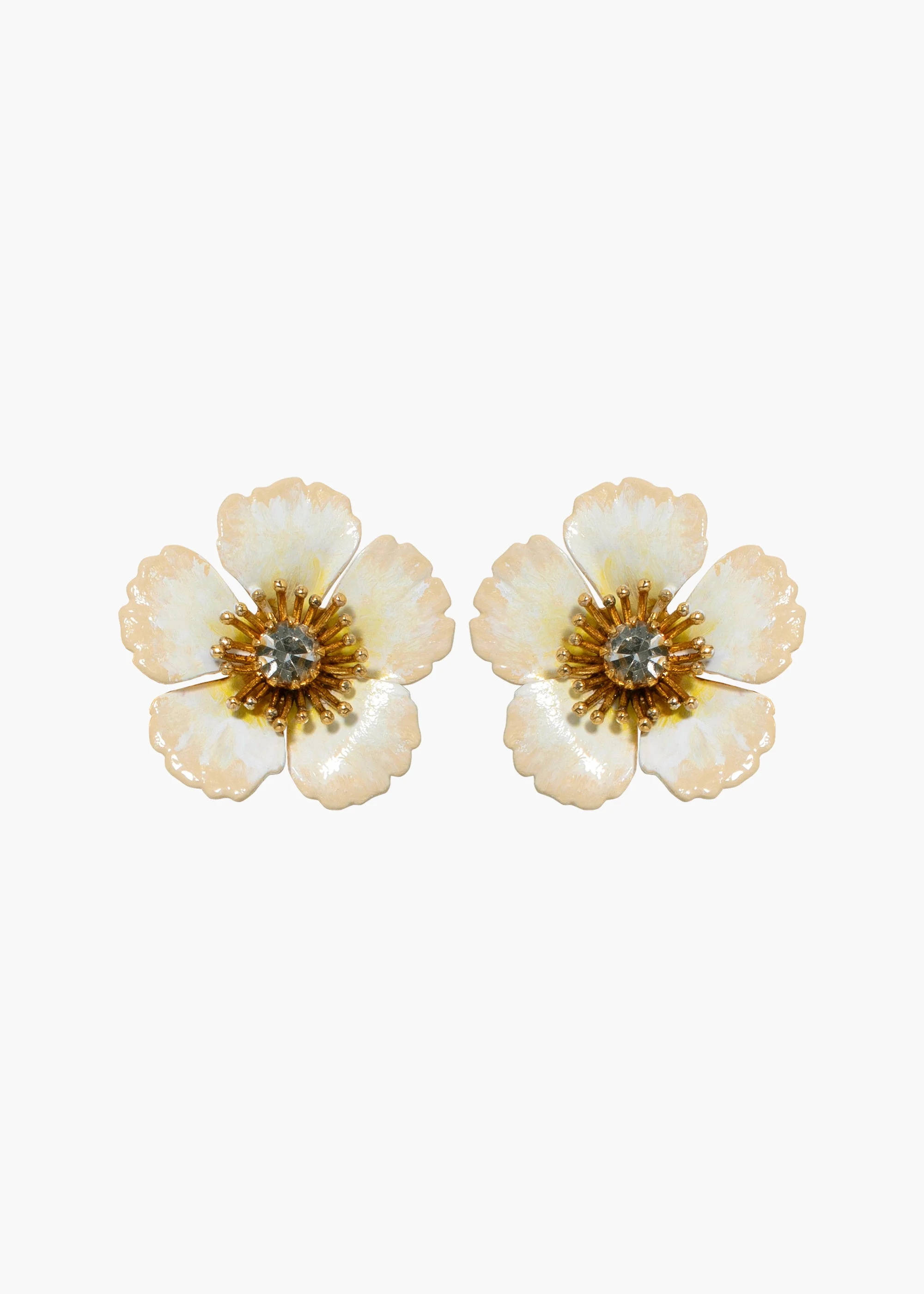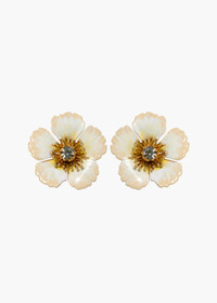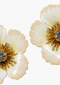 The Deb Earrings are inspired by the organic beauty of natural flowers, with lifelike color gradation that brings the bloom to life. To achieve this soft detailing, each flower is painted by hand in our New York studio in a process that takes three days to complete. Sculptural stamen details and a crystal center finish the look. Dimensions: 1 inch length Material The Deb Earrings are made by hand in New York from hand-painted 18K gold plated brass and Czech crystal. They have a surgical-steel post, are nickel-free and safe for sensitive skin. We recommend storing earrings in their dust bag while not in use, and avoiding contact with water, perfume, hairspray, and other chemicals.