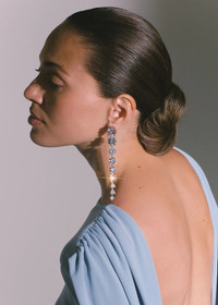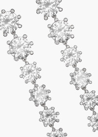 Profoundly memorable, the Degrade Crystal Earrings feature fine cubic zirconia graduated in size to form a striking linear earring. Using strategic design to achieve otherwise-unattainable sparkle, the cubic zirconia is placed high in the setting, allowing for the most light refraction to enter the stone; each of the setting's prongs has inset crystals, leaving no surface untouched by crystal. Made by hand in New York, the shape is designed with a flattering lengthening effect in mind. Material The Degrade Crystal Earrings are made by hand in New York from Austrian crystals and rhodium plated brass. They have a surgical-steel post, are nickel-free and safe for sensitive skin. We recommend storing earrings in their dust bag while not in use, and avoiding contact with water, perfume, hairspray, and other chemicals.
