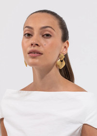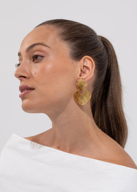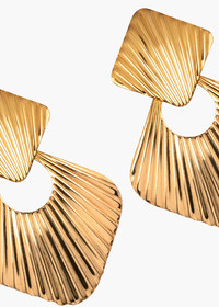 A modern silhouette with Art Deco influences, the Demetra Earrings take the fluting and pyramid themes that defined the Art Deco era, and reinterpret them in a fresh statement earring. Made by hand in New York and finished with 18-karat gold or rhodium plating, the symmetrical rays can only be achieved with scrupulous handwork. Our take on a doorknocker earring, these are simultaneously wearable and dramatic. Dimensions: 2.25" Material The Demetra Earrings are made by hand in New York from 18K gold or rhodium plated brass. They have a surgical-steel post, are nickel-free and safe for sensitive skin. We recommend storing earrings in their dust bag while not in use, and avoiding contact with water, perfume, hairspray, and other chemicals.