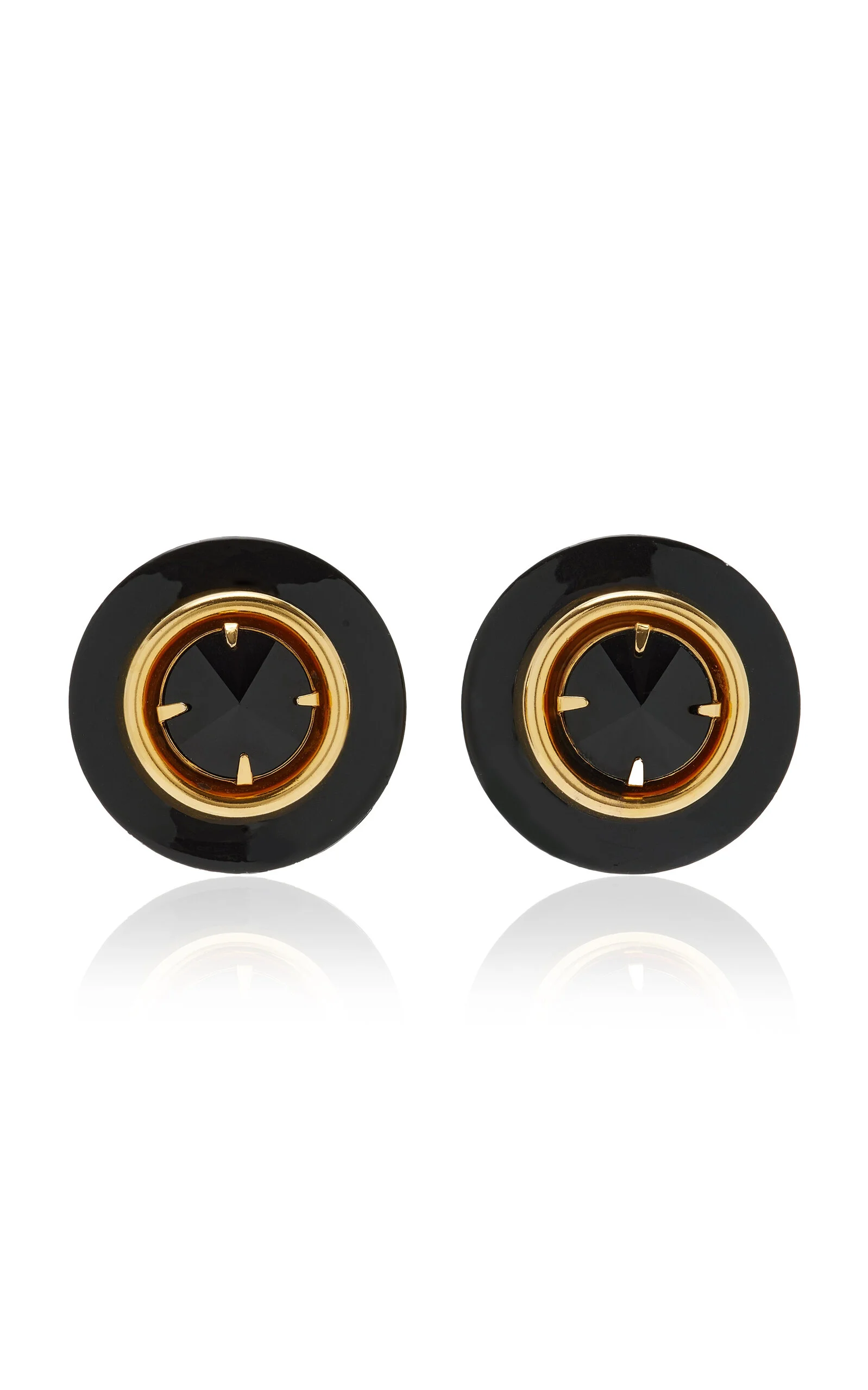 Jennifer Behr launched her eponymous label in 2005 with a distinctive range of luxury hair accessories and jewelry designs. Each piece is carefully crafted and made to carry on the rich inspiration, tradition and powerful histories of bygone eras. PRODUCT DETAILS - Post fastening for pierced ears - Composition: 18k gold-plated brass, acrylic paint, glass crystal, surgical steel post - Made in the USA