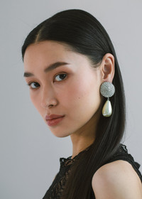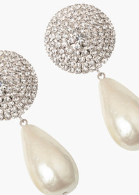 A study in balance, the Dorrit Earrings' brilliant crystal shine is tempered by the softness of the hand-formed glass pearls. These earrings are strategically crafted by hand to maximize sparkle, with dozens of hand-set crystals. The look is rounded out with a gently swaying drop. Dimensions: 2.5 inch length Material The Dorrit Earrings are made by hand in New York from rhodium plated brass, crystal, and hand-formed glass pearls. They have a surgical-steel post, are nickel-free, and safe for sensitive skin. We recommend storing earrings in their dust bag while not in use, and avoiding contact with water, perfume, hairspray, and other chemicals.