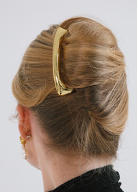 A compelling case for the classic hair pin, the Effie Hair Pin has a graceful simplicity that never fails to pull an ensemble together. Its golden surface complements the sleekness of the design. This piece single-handedly elevates any look, and is surprisingly easy to style in the hair. Material The Effie Hair Pin is made of 18K gold tone plated zinc on a durable light hair pin, designed to stay firmly in place. We recommend treating each pin as you would a piece of jewelry, and storing in the dust bag when not in use. Avoid contact with water, perfume, and other chemicals, including hairspray, which should be used before placement in the hair. Imported.