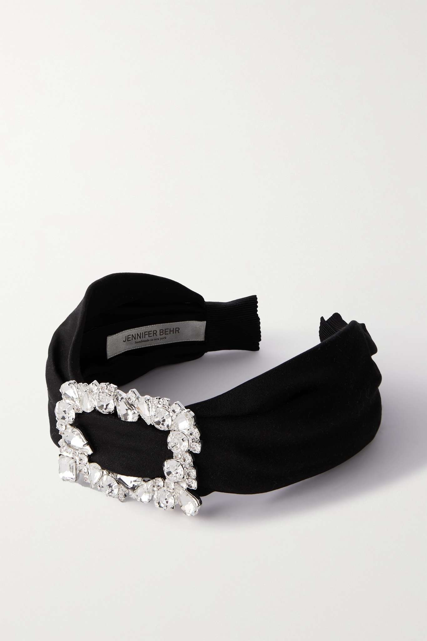 EDITORS'NOTES Jennifer Behr's 'Elisa' headband is so timeless and glamorous. Made from silk, it has a turban-inspired silhouette and is topped with a crystal-embellished buckle. SIZE & FIT This item’s measurements are: - Circumference: - 35cm - / 13.8in - Width: - 13cm - / 5.1in DETAILS & CARE - Black silk